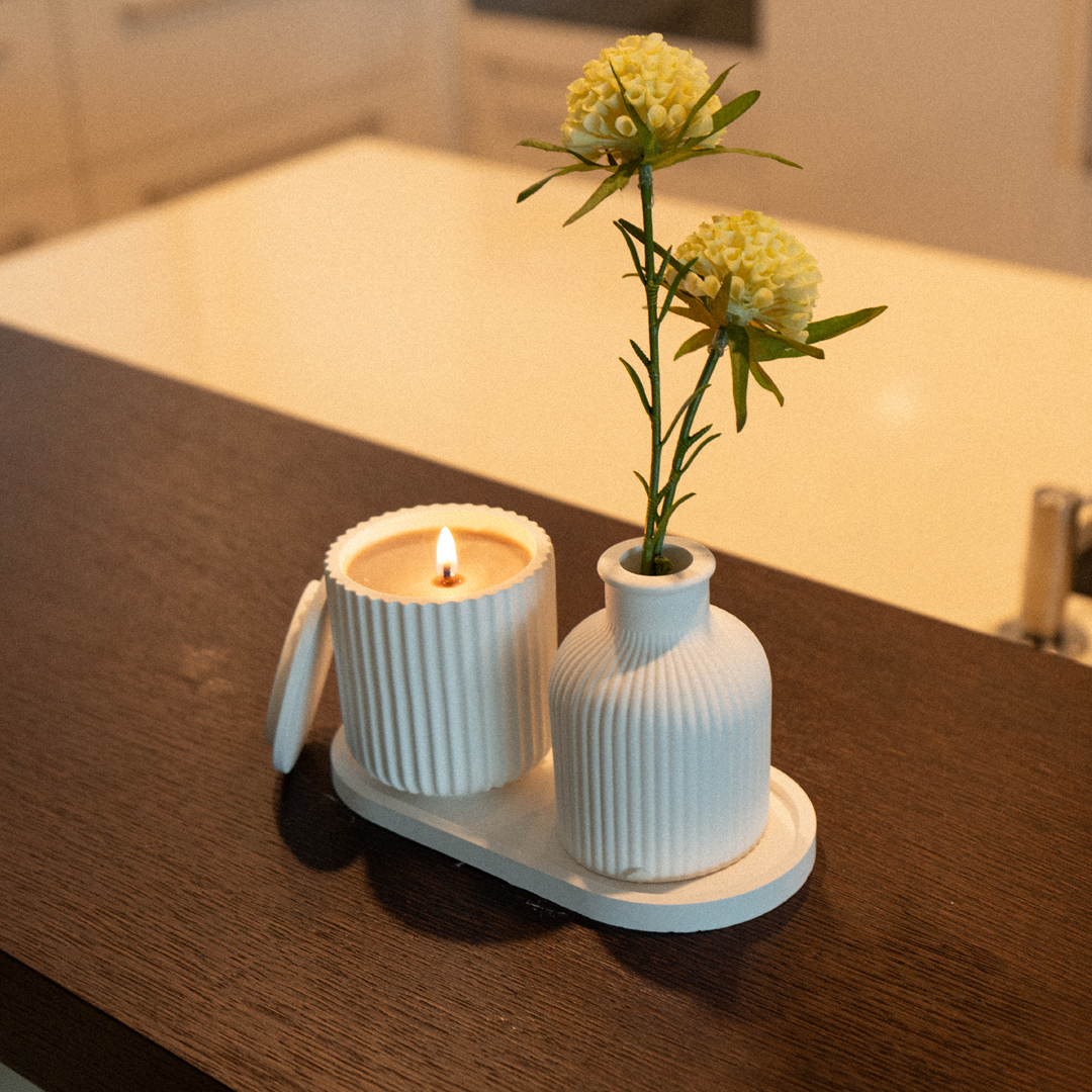 Unsere Kerzen werden aus 100 % natürlichem Bio-Sojawachs handgefertigt. Wir verwenden ausschliesslich erstklassige Materialien, die für Langlebigkeit und luxuriöse Qualität stehen, sowie hochwertige Baumwolldochte für ein sauberes und gleichmäßiges Abbrennen.